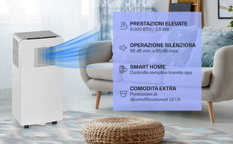 Va ricordato anche che si tratta di un condizionatore portatile del peso di circa 26 kg, che quindi risulta ben trasportabile da un ambiente all’altro (anche grazie alle rotelle di cui è dotato) in base alle proprie esigenze senza troppi sforzi. In più si può gestire a distanza in maniera davvero facile e veloce attraverso il tradizionale telecomando, controllando tutte le funzioni come temperatura, velocità, modalità o timer.