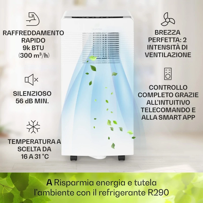 Un rumore di fondo è una caratteristica che appartiene a ogni singolo condizionatore, dato che c’è un motore che lavora, ma talvolta può risultare talmente forte da diventare sgradevole. Questo modello di Klarstein produce un rumore minimo assolutamente sopportabile dovuto al suo semplice funzionamento che tuttavia può essere ulteriormente ridotto grazie al night mode.